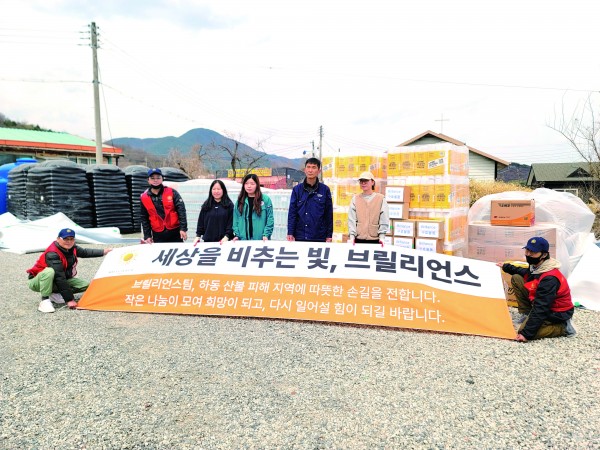 글로벌 기업 브릴리언스 팀(Brilliance Team)은 생필품, 방역물품, 간식 등 총 1천만 원 상당의 긴급 구호 물품을 꾸려 지난달 직접 옥종면을 찾았다.