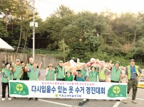 “낡은 옷에 생명을”하동군새마을부녀회, 헌 옷 수거 경진대회 개최13개 읍·면 새마을지도자도 참여헌 옷 15톤 수거해 환경보호에 앞장서   하동군새마을부녀회(회장 장영숙)가 지난 1일 각 읍면 새마을지도자 30여 명과 하동공설운동장에 모여, ‘다시 입을 수…
