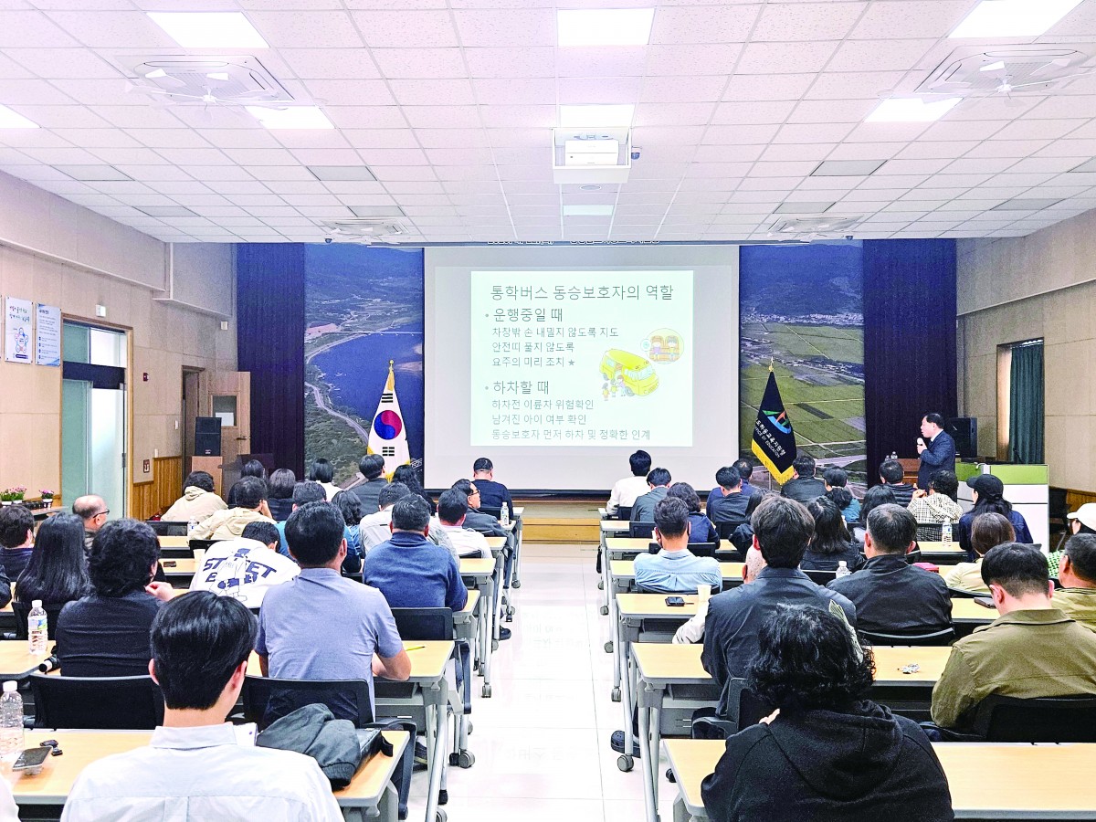 하동교육지원청(교육장 이춘호)은 4월 22일(화) 하동교육지원청 3층 대회의실에서 관내 유‧초‧중학교 통학버스 운전원과 보호탑승자, 학원 관계자 54명을 대상으로 “2025년 통학버스 안전교육”을 실시했다.